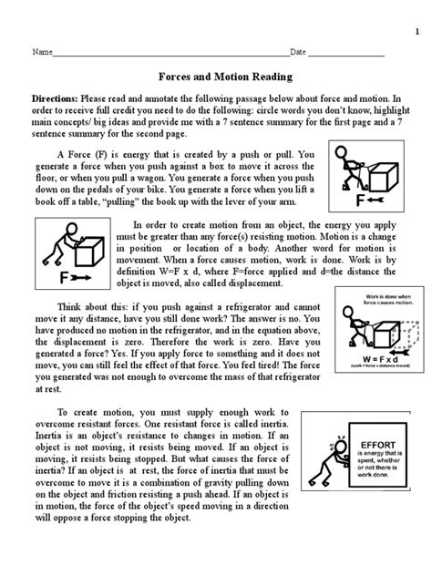 Read motion and forces comprehension Doc Gutenberg